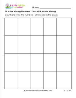 This worksheet of empty boxes has a definite purpose! Kids fill in the missing number in each box as they count all the way from 1 to 20.