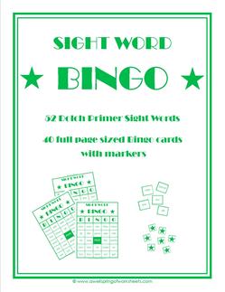 Just one more in this row and I'll have Bingo! Kids just love Bingo! This Dolch sight word bingo - primer game includes 40 full size cards, 52 word cards, playing pieces, and instructions.